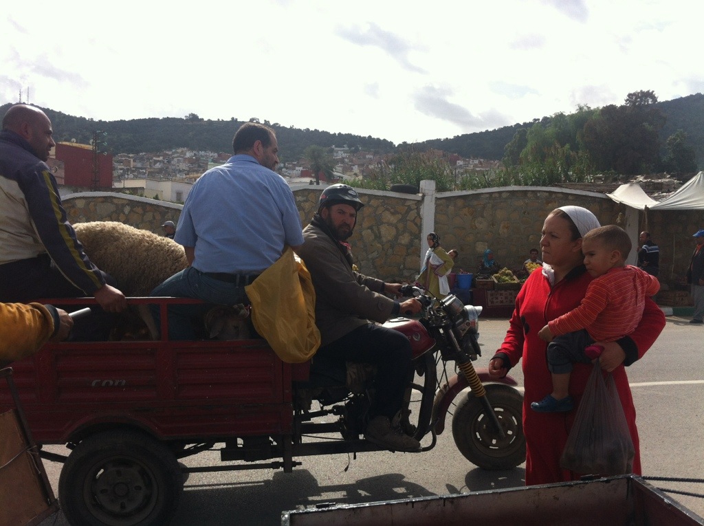 The last stretch of road to Rabat brought us back to the 21st century. The back roads we took between Ouezzane and Souk El Arba du Rharb saw us in real rural, agricultural Northern Morocco. We rode through beautiful rolling hills with bare fields and beaten road surface. We crossed tiny tin shack villages and had our first picnic on the side of the road – sardines, bread and bananas – sheltered from the strong wind by our bikes. We then emerged at the back end (literally; the dumping ground) of Souk El Arba and saw what can only be described accurately as a souk… hence the name I suppose. Thousands of people were trading goods and food, mechanics were wrenching on old cars and tractors and no one looked both ways before crossing. The number of fat sheep being pulled around must have rivalled that of turkeys in America in this Thanksgiving season. The difference is that for Eid, the Muslim holiday, Moroccans buy a whole live sheep and push, pull and carry it all the way home! And there must be something in the air because none of them go easily; I reckon they know what’s coming. On a different note I spotted booths for public scribes (ecrivain public)! Talk about a different era…