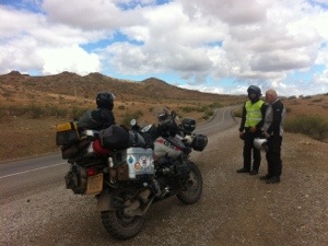 On Saturday we finally departed and were not unhappy to see the back of Azrou. I’m sure it’s very pretty in the sunshine but its a bit bleak in the rain! The heavy rains had made off-roading impossible so, after seeing Barbary Apes in the Cedar Forest, we headed south towards Khenifra and were met by beautiful sunshine. We spotted a couple with a BMW GS Adventure with a Horizons Unlimited sticker on the side of the road and stopped for a chat. Nigel and Sharon were on a month tour of Morocco and funnily enough had been at the same HUBB meeting in Ripley in July! As a matter of fact they had been speakers, presenting their trip to Nordkapp in Norway.