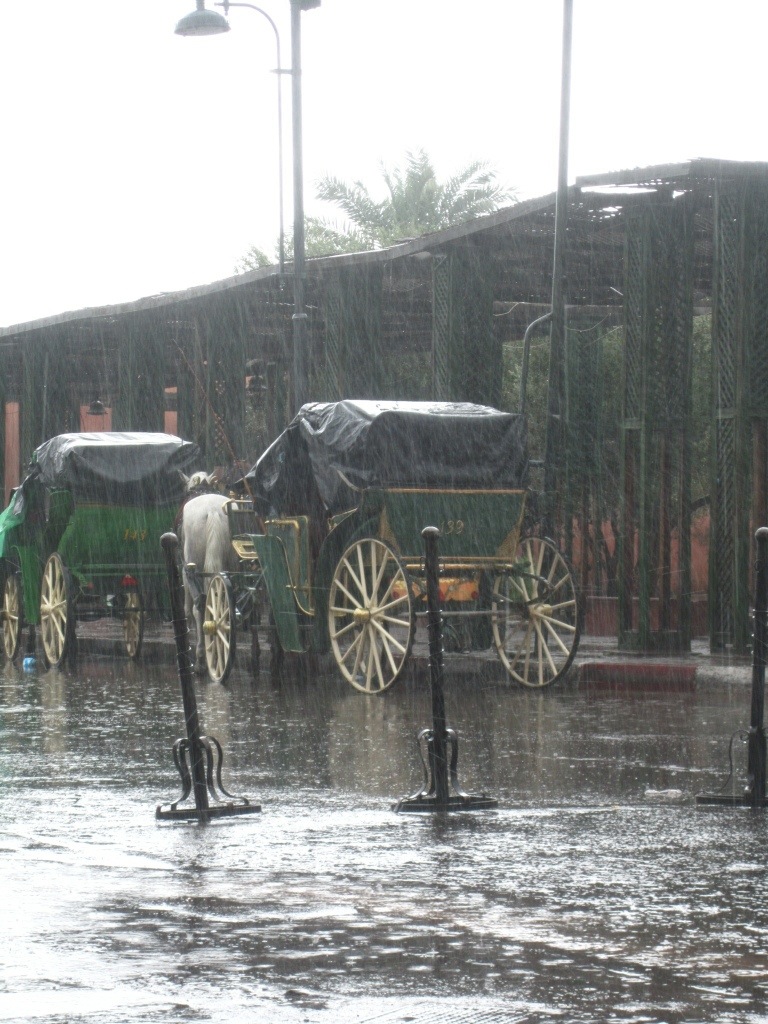 Unexpected deluvial rain forced us to spend 36hours in Azrou. On our way there, as we were climbing and gaining altitude we entered the worst fog I’ve ever seen and then into a deluge. The visibility was so bad that we didn’t see the “St. Hubert” vista point I was keen to have my picture taken at. We were soaked through and through when we reached Hotel Salam. It was so cold and damp that we had to find a laundrette to dry our clothes. Even that didn’t help much…