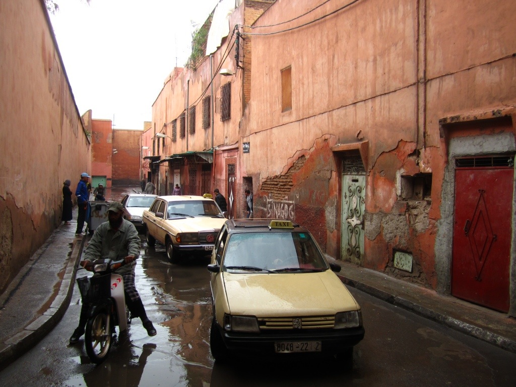 We rode the whole day in a thunderstorm with very strong side winds which forced us to avoid the highway and stick to the smaller, slower roads. We saw next to nothing of the changing landscape as we were 100% focused on the riding but we did notice how everything in our peripheral vision became a warm shade of red, the colour of Marrakech.